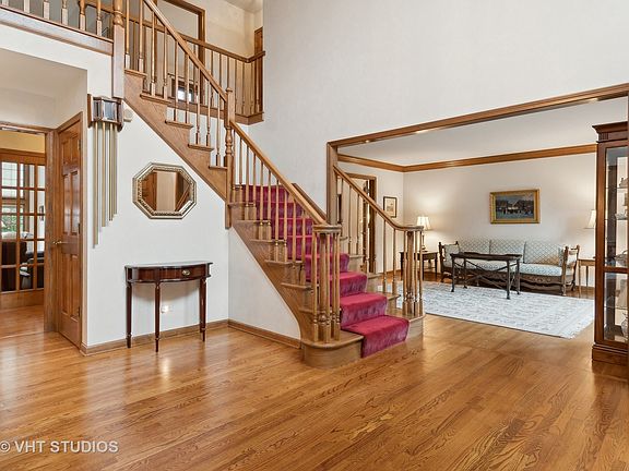 This gorgeous and impeccably maintained 4 bedroom, 3 full bath 2-Story Tudor in sought-after Brighton Ridge could be yours just in time for the holidays! The custom paver brick driveway/walk-way leads you into the huge 2-Story foyer, accented by the beautiful hardwood floors which extend throughout the entire main floor. The split living room and dining room both boast bay windows and rich double-crown molding. You will marvel as you enter through double French doors into the dramatic 2-Story Family Room with a floor to ceiling brick fireplace, flanked with windows, as well as, stunning Palladian windows/doors that lead out to 2 separate patios. There's even a convenient wet bar tucked in the corner. The enormous gourmet kitchen features beautiful custom cabinets, granite counters and coordinating backsplash, a large island with seating and 2 huge pantries. A huge benefit is the main floor 5th bedroom/den/office with a nice size closet, door access to the private patio, a wall of custom bookshelves and is conveniently adjacent to the HIGHLY DESIREABLE MAIN FLOOR FULL BATH. This is the perfect in-law arrangement. You will be in awe of the backyard retreat with its 2 separate private custom paver patios lined with mature landscaping and paver walls. The home is just waiting to host gatherings! The 2nd floor welcomes you with a spacious step up loft overlooking the family room. Enter through the double doors into the amazing primary suite which boasts a sitting area, vaulted ceilings, and a huge walk-in closet. Relax in the spa-like En-Suite Bath featuring an inviting whirlpool tub, separate shower, and dual sinks. The 2nd, 3rd, and 4th bedrooms are all carpeted, generously sized and have large closets. The unfinished basement is waiting for your design ideas, has plenty of room for storage, offering endless possibilities. Located within walking distance to Springbrook Prairie Forest Preserve and Brighton Ridge Park. Just minutes to downtown Naperville's shopping, dining and Riverwalk. Close to the Metra train station and access to I-88 and I-355. Award-winning 204 SD. Don't miss out on this perfect gift for your family - make it yours today!