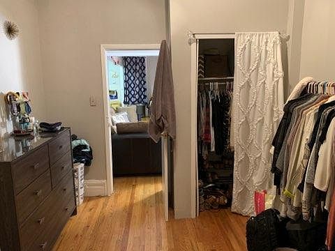 3rd floor walk up with high ceilings and some original charm. Wood floors throughout open kitchen with small insland but enough space to fit a dining room table. Please note this apartment is railroad style and does require a 1 month brokers fee. No Pets No Washer/Dryer (24 hours notice to show_) Heat and Hot Water Included in rent