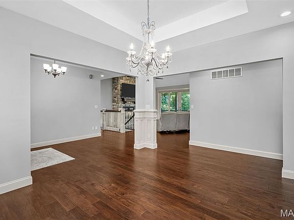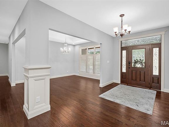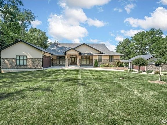 WOWZERS! Custom built, 5 year old sprawling ranch home with over 4800sqft, a 4 car garage in Lindbergh Schools! Sitting on a level 0.71 acres, fully fenced yard, ample parking and more! The main floor features and entry foyer, hand scraped hardwood floors, 9' ceilings, custom millwork, home office, formal dining room with tray ceiling, great room with wall of windows/doors with power shades, stone gas fireplace, custom kitchen with huge center island, stainless Bosch appliances, breakfast bar and room, french door to maintenance free partially covered oversized deck. The master is grand with a tray ceiling, separate his/hers walk in closets, en-suite bath fit for royalty with separate vanities, stand alone tub, roll in shower and skylight. There are 2 additional bedrooms each with their own private en-suite bath and WI closet, and main floor laundry room on main level. The stairs are open to the finished walk out lower level with huge family room, rec room, half bath, full custom wet bar, stone gas fireplace, 4th bedroom with private bath and closet. There is an attached 2 car and an oversized semi-detached 2 car garage with hvac, 10' ceilings, workshop and more. The driveway is enormous, yard is level and fenced, landscaped and ready for family gatherings or a pool. There are 3 zones to the hvac, new gutters, vaulted ceilings, outdoor kitchen area, central vacuum, Anderson windows and custom everything!! This one is a 'must see inside' home! Showings start Tuesday 7/8/25.