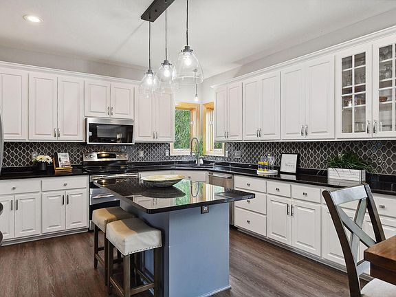 The recently updated Chef’s kitchen is a culinary dream, featuring a center island, granite countertops, cabinet rollouts, double oven, convection microwave, Samsung Smart refrigerator, and a beautifully tiled backsplash.