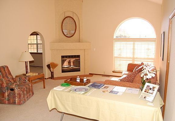 Carefree living in this warm and inviting two story home located on a corner lot in desirable Heritage Hills East community. Cathedral ceilings, upstairs balconies with amazing mountain views as well as gorgeous backyard and private side and front courtyards for summer relaxation. Open floor plan with custom gas log fireplace, neutral paint, newer hardwood floors, stainless steel appliances, marble kitchen countertops with custom backsplash, built-in microwave & wine rack. Intercom and stereo throughout, updated bathrooms and laundry room, refrigerative air.Meticulously maintained! Quiet neighborhood with two parks near by.
