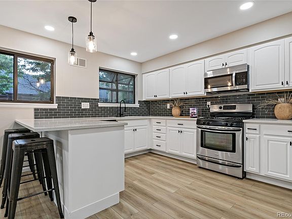 Welcome to your fully updated home in the meticulously maintained Wind Stream Community in Southeast Denver! This serene, park-like neighborhood is ideally situated next to the High Line Canal and Cherry Creek Country Club. Step into the spacious living room, where vaulted ceilings and a cozy fireplace create a warm and inviting atmosphere. The living room opens to the front patio, perfect for entertaining or enjoying your morning coffee. Adjacent to the living room, you’ll find a generously sized dining room and a breakfast nook. The kitchen is updated with new quartz counters and stainless steel appliances