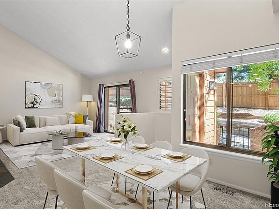 Discover your next home nestled in a peaceful, private corner of the complex. This community offers a unique escape, adjacent to the High Line Canal with 71 miles of trails and the serene Cherry Creek Country Club. Enjoy sunny days at the central community pool. Benefit from lower taxes in unincorporated Arapahoe County and the top-rated Cherry Creek Schools. Conveniently located, you're just 3 miles from I-225 and the light rail, and a short jaunt to Parker Road, making city access a breeze. This home features newer carpet and paint, an updated fireplace surround and kitchen, ready for you to move in and enjoy. Beautiful plantation shutters add warmth, and all kitchen appliances, plus the washer and dryer, are included. The basement’s stylish tongue and groove ceiling adds mid-century flair; it includes a handy Murphy bed and an egress window, perfect for guests or a permanent bedroom. Don't miss your chance to see this charming home—schedule a visit today!