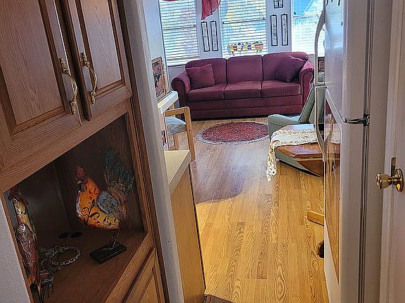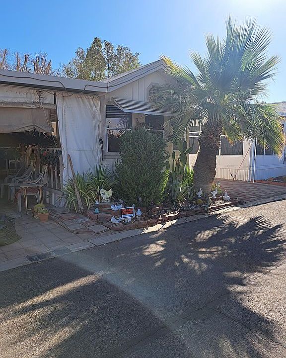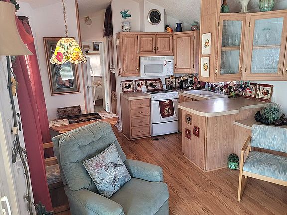 1998 Park Model, fully furnished with hardwoods in kitchen and living area, covered deck and oversized carport, Arizona room, storage shed, many beautiful plants, mature shade trees, and a welcoming palm tree out front. Close to park amenities. $40,000. 9400 N Frontage Rd #429