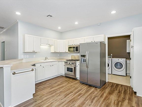 Come and see this lovely home in the popular Wilson Estates Clubhouse Villas neighborhood. A very open design that includes an office/den plus 2 more bedrooms. The great room features a new electric fireplace, French doors to the patio area and dining space all overlooking the kitchen. Kitchen is fully applianced with a Wolf gas range, refrigerator, microwave and dishwasher. The utility room includes the washer and dryer. Both Bedrooms have new carpeting and the primary bath has new luxury vinyl laminate flooring. The two car garage has a large storage area above the parking area plus a safe room below. Maintenance free living includes exterior (except windows), roof as well as trash, snow removal, landscaping/sprinkler system, clubhouse and pool, all covered by monthly dues of $525.00.