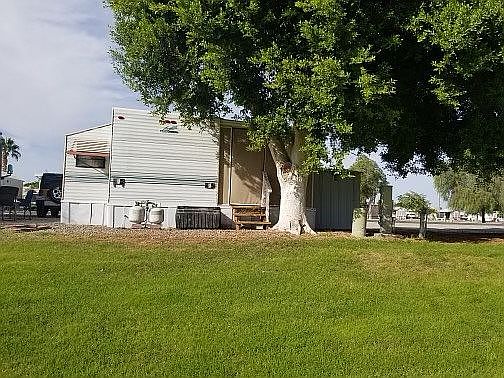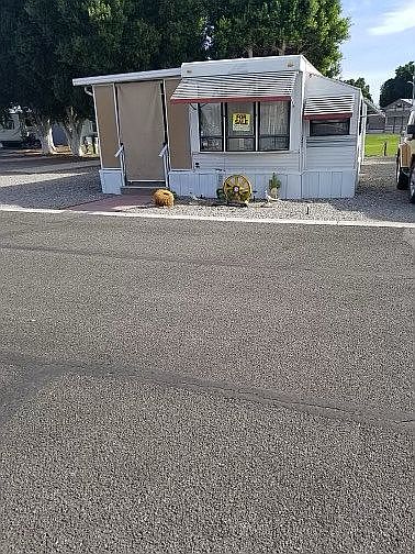 1993 Skyline Homes Layton size 8x36 with a full length covered porch, small shed, and full length gravel parking. Newly installed: carpet, AC heat pump, 19-gallon water heater, exterior lighting with timer, full length covered porch, kitchen faucet, bath fixture, bath room sink faucet, comfort height toilet, ceiling light fixtures, propane gas spark ignition, range. 2024 lot rent and property taxes paid, fully furnished. Call 801-598-4858 this unit is in the no pet area. Before you purchase any park model; you must first meet with the Park Manager of Bonita Mesa. No exceptions.