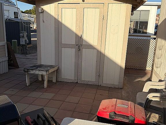 Big out door shed with electricity, Carport, room for a deck, golf cart parking or toys, the ground is all pavers, no dirt or gravel, awesome location, 5 minutes to Walmart and Shoping