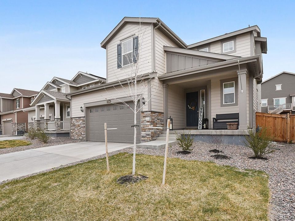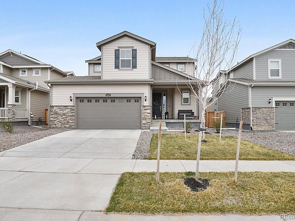 Newer home without the wait! Built in 2020, this modern home has all the perks of a new build without the long wait. Amazing location with an easy commute to Downtown Denver and Denver International Airport. 9 ft ceilings span the entire home with tons of natural light. The white shaker style kitchen features stainless steel appliances, gas range, huge island, and stone counters. Durable and stylish luxury vinyl flooring flows throughout the entire downstairs. Off the kitchen features an office space with built in cabinetry and two desks. Upstairs you will find a huge Primary Suite with coffered ceiling, attached bathroom, dual vanity, stand up shower and large walk in closet. The upper level of the home also features 3 other large bedrooms and full size bathroom with double vanity. A large laundry room is also found on the upper level. This home has an unfinished basement ready for you to customize to your taste with an already installed radon mitigation system in place. Enjoy the cost of lower energy bills with 20% discount off your electric bill and no maintenance costs for the Solar Panels. The home is Wi-Fi CERTIFIED powered by Ruckus Wireless to make sure you have wifi in every room of your home. Tons of Smart Home Features such as the video doorbell and wifi controlled thermostat.