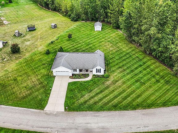 Here it is!! Main level living in a peaceful country subdivision, just minutes from town. This semi-open concept ranch has been meticulously maintained. Covered front porch is perfect for welcoming or relaxing. Foyer with arched ceiling is open to both formal dining room and spacious living room with cathedral ceilings and backyard views. Well-appointed kitchen offers a breakfast bar, pantry, and stainless appliances. Primary suite also boasts a large walk-in closet and ensuite bath, complete with whirlpool tub and step-in shower. Dedicated hallway leads to bedroom 2 (cathedral ceiling) and bedroom 3 (backyard views), and another full bath. Oversized laundry room with built-ins, wash tub, and south-facing window is conveniently located just inside from the attached 2-car garage with elevated storage. Backyard boasts a large north-facing shaded patio, built-in firepit, storage shed, lovely landscaping, and a gorgeous irrigated lawn. Other upgrades include a new A/C in 2019, newer dishwasher, newer QUIET garage door opener, extra insulation, humidistatic bath fans, newer sump pump, new toilets (2023), sealed concrete crawl, and more! LOW taxes (only $1063 per YEAR) make this your next home sweet home.