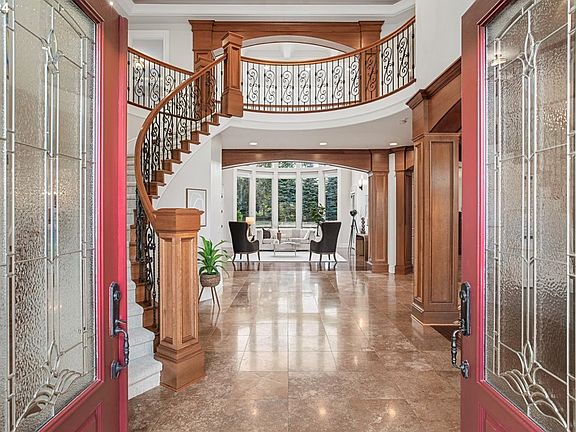 Live a luxurious lifestyle in this extraordinary custom-built home on over an acre, with impeccable finishes and custom craftsmanship throughout. As soon as you step inside, prepare to be amazed by the grand entryway with its soaring ceilings, beautiful formal dining room, and breathtaking great room with 20ft coffered ceilings, expansive windows, and a gas fireplace. Walk into your chef's kitchen with custom cabinetry, tile floors, high-end appliances, and an oversized island. You will also find a family room with built-ins, a gas fireplace, and an enclosed outdoor space perfect for year-round use. Continuing on the main floor, find your massive primary suite with custom built-ins, a gas fireplace, and a private patio. Step inside your spa-like bathroom and be in awe of the roomy steam shower, large soaking tub, double vanity, and spacious walk-in closet, and enjoy the added convenience of separate washer and dryer hookups. You will also find a home office on the main floor with built-ins, coffered ceilings, and a gas fireplace. Ascend upstairs and find three more ensuite bedrooms with walk-in closets and private balconies. Walk down the hall and enjoy a movie night in your home theater room with platform seating and surround sound. Finally, a large bonus room with a full wet bar and bathroom makes the perfect entertaining room. Outside, you will find an attached 3-car garage, a beautiful hardscaped patio firepit, and a pristine landscaped yard. Do not miss the opportunity to own this breathtaking property!