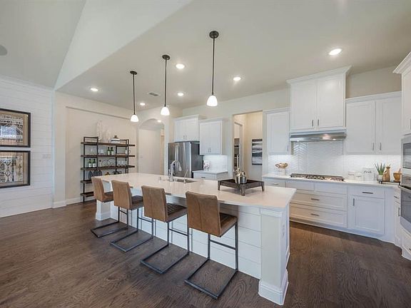 2020 NEW on an oversized lot! Gorgeous 1 story, 4BR, 3BA home with contemporary floorplan. Game room, study & a 5-foot garage extension! Open concept kitchen, featuring pots & pan drawers, pull-out trash cabinets, 5 gas burner cooktop, & GE built-in appliances. Spacious dining & living areas open to covered courtyard featuring 15-foot sliding glass doors with a gas fireplace. White kitchen cabinets, quartz countertops & upgraded tile, wood & carpeting throughout. Brick front porch, 8' solid wood doors & home is Environments for Living Diamond Certified for guaranteed low heating & cooling costs. Many upgrades, this home is a must-see! Under construction est. completion date July-Aug. PHOTOS ARE REPRESENTATIVE.