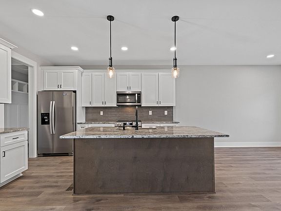 Welcome home to 9400 Turkey Way, a beautifully crafted semi-custom ranch offering exceptional style, comfort, and value. Set on a spacious 0.92-acre lot, this thoughtfully designed home features an open-concept layout with just over 1,500 square feet, 3 bedrooms, and 2 full baths—perfectly sized for easy living without sacrificing quality. The inviting living area is anchored by a stunning floor-to-ceiling shiplap electric fireplace with a cathedral ceiling, creating a warm and impressive focal point. The kitchen is equally impressive with premium soft-close cabinetry, Level 2 granite countertops, a stylish tile backsplash, stainless steel apron-front deep single-bowl sink, pantry with ¾-inch wood shelving, and a 5-burner range with convection bake and broil plus a built-in air fryer. The refrigerator conveys, adding even more value. The private primary suite offers a luxurious tiled walk-in shower, Moen and Delta fixtures, and a custom designer closet. Luxury vinyl plank flooring runs throughout the home, complemented by craftsman-style trim with 6-inch baseboards and ceiling fans in all bedrooms. Additional features include a laundry room with an abundance of built-in cabinetry, custom drop zone, a covered screened back porch ideal for relaxing, a covered front porch with a striking 8-foot ¾-glass door, sealed crawlspace, energy-efficient YKK windows, brick foundation, 30-year architectural shingles, a whole-home water softener filtration system, and a 2-car garage. A rare opportunity to own a semi-custom ranch on nearly an acre at an affordable price—this home truly checks all the boxes.