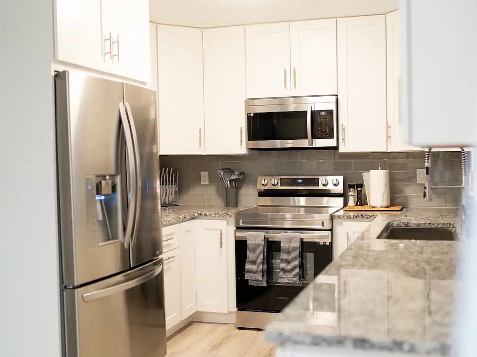 Inside, you'll find a spacious open-concept layout with a modern living room, dining area, and a fully equipped kitchen complete with updated appliances and generous natural light. Each bedroom is well-sized and includes comfortable furnishings and plenty of storage, making long-term stays feel effortless.