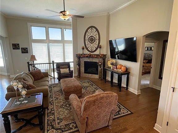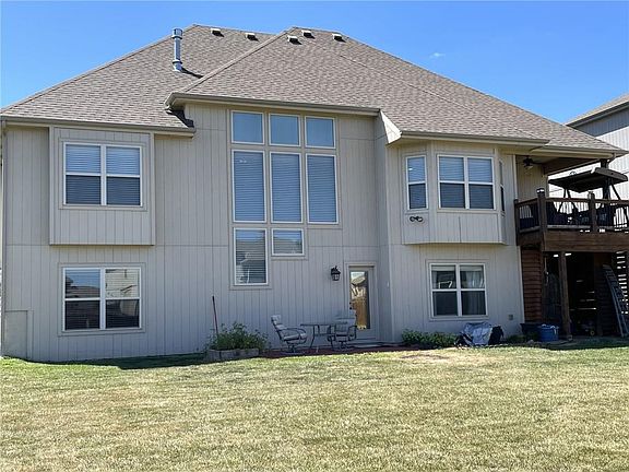 Priced BELOW APPRAISED VALUE!! Wonderful seven year old, one owner, 5 bd, 4 bath with 3 car suspended garage floor. Pet free, smoke free home. This home boasts open floor plan with high ceilings and lots of natural light throughout. An abundance of storage in this home with TWO walk-in pantries, front and back coat closets, 4 of 5 bedrooms with walk-in closets. Epoxy car garage floor. Double utility door workshop. Storm shelter. Large Primary bathroom with walk-in shower and whirlpool tub. Tilt-in windows. Three car suspended floor garage. Short distance to new Platte Purchase Middle School!!
