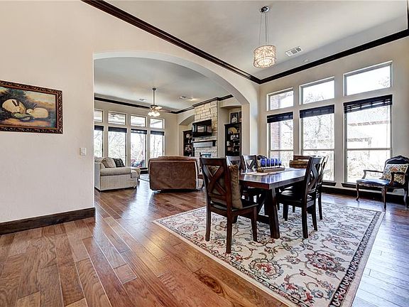 Come see this beautiful waterfront home only 10 minutes away from downtown Edmond! This gorgeous home on 1 acre backs up to a private fishing pond. Upgrades to the home include four large picture windows to view the water from the living room, a stonefaced fireplace, hand scraped hardwood floors, custom exterior brick fireplace, storm shelter in garage floor, additional landscaping, and an extended retaining wall. The oversized back patio is perfect for entertaining or enjoying sunsets by the water! Cascata Falls is a highly desirable Edmond neighborhood which includes a neighborhood playground, basketball court, clubhouse, and pool. Once you come see this home you won't want to leave!