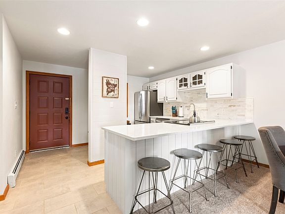 This updated condo located at the base of Buffalo Mountain offers breathtaking views of Lake Dillon. Step into nature off the deck that backs to National Forest and trails. Relax inside the fully furnished and updated home with modern-alpine finishes. With a spacious kitchen, wood-burning fireplace, beautifully refinished bathrooms, and high-country accents throughout, this home is perfect for locals and vacationers alike. The complex offers an indoor pool, hot tub, sauna, and community room.