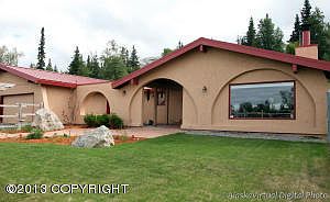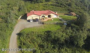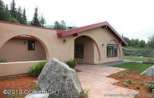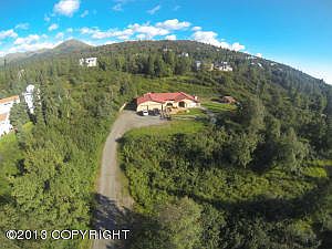 Courtyard entrance leads to unique property--Ranch home on 2.63 acres in desirable South Anchorage hillside. Winter views of city lights, inlet & mtns. Kitchen leads to dining & patio decking with lg. fenced yard. South-facing sunroom. Bonus office. Sunken LR w/ picture window views & FP. Beautifully remodeled master bath w/double vanity & abundance of natural light from skylight. BTV all info.