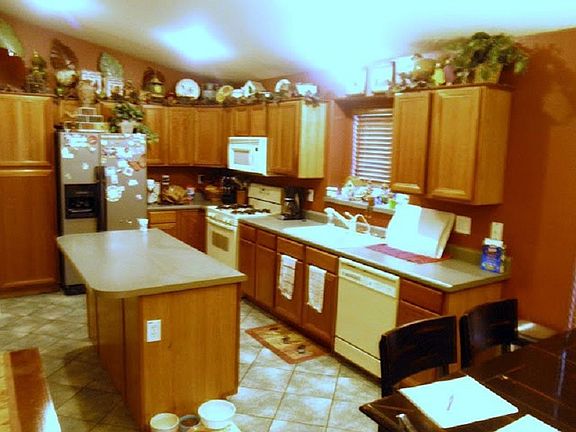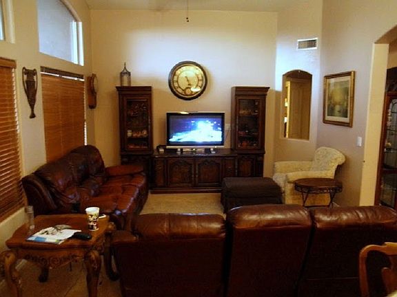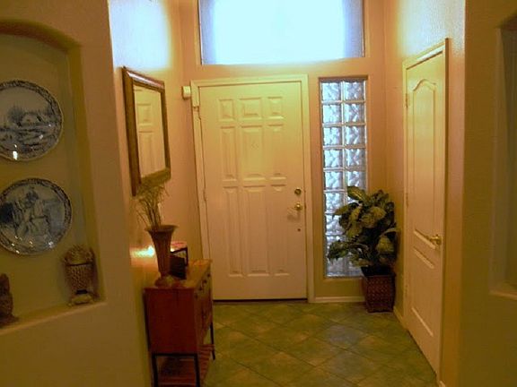 Fantastic home in great neighborhood. Featuring tile in all the right places, living / dining room combo & extended kitchen with light cherry wood cabinets. Kitchen island with gas stove. Family room with French doors & gas fireplace with cultured stone. Vaulted ceilings, wood blinds, master bath w/ glass block and door to patio. Security system, R/O water softener system, sunscreens, over sized backyard w/ natural gas grill. Flagstone patio, childrens play area with trampoline & RV gate. Dont miss this great home, it wont last long on the market!