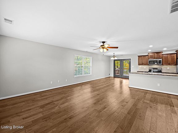 This one is sure to please! Located on a beautiful private dead end lot, you won't want to miss your chance to see this move-in ready, open concept ranch home. Upon entering, the gorgeous handscraped wood floors will immediately draw you into the open & inviting living room that leads to your expansive kitchen & dining area where you'll find a huge island perfect for food prep, serving, and extra seating. The well appointed kitchen also includes an abundance of cabinets, black stainless steel appliances, & a large pantry with loads of storage. Located just off the kitchen, the laundry room is complete with a built-in bench cubby/drop zone. Toward the back of the home, a primary bedroom ensuite includes a large walk-in closet, & a bathroom that has a double sink vanity, tile walk-in shower & linen closet. Off the hall, there are 2 nice size bedrooms with easy access to the full second bathroom. Enjoy backyard entertaining??? You will love the large deck that consists of an 8'x12' covered area & a 10'x25' open area. The backyard is complete with a beautiful black aluminum fence perfect for your furry friend, & the gutters have the leaf filter system in place for easy maintenance. Hurry & schedule your showing today...this one level home will go fast!