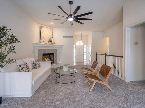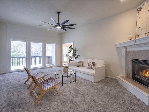 - Features: Carpet, Ceiling Fan(s), Fireplace