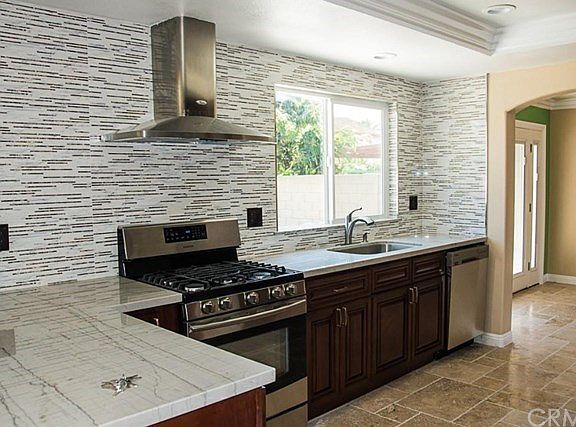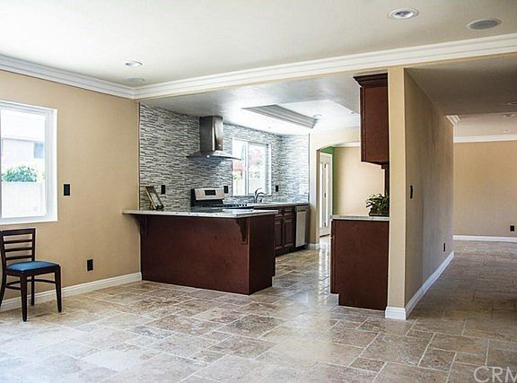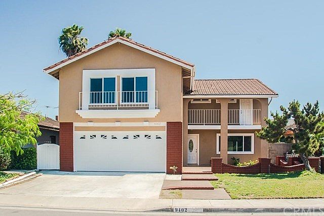 Come check out this Beautifully Completely Remodeled Home. Over 120k was spent on remodel. This home features 5 bedrooms and 3.5 baths. 2 master bedrooms with huge walk-in closets and balcony access. All bedrooms are wired for LCD TV's, crown moldings through-out, Travertine natural stones downstairs and hardwood floors upstairs. The kitchen has complete granite counter tops, quality wood cabinets, Samsung stainless Steele appliances, & wine fridge. Recessed lighting throughout & surround sound wired with speakers. Not to mention, central A/C & central heat, Dual-pane vinyl windows, Dunn and Edwards Designer paint for interior & exterior. Stained concrete at front entry. Red Tile roof. From the Dining room-French windows looking out to the huge backyard. The backyard is surrounded by block wall fence for privacy. Great for Sunday BBQ's and family gatherings. Close to everything & centrally located. A few blocks away for Brodard Chateau Restaurant & In and Out Burgers. 1/2 mile from 22 Freeway. 15 minutes to the Beach. 5 minutes to Mile Square Park.