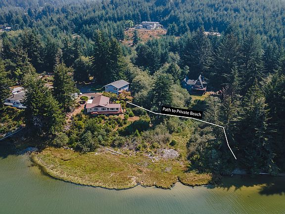 Coos Bay views Bay beach access! Garage space galore! .61 acres! This is the home you're looking for! Designed for easy remodeling, & waiting for your updates. 3 bd, 2.5 ba, 2580sqft of living space, ~1290sqft garage with room for all your toys. (tandem parking for 4+ cars) Located in a quiet neighborhood with a private path to a natural white sand beach. Kayak, picnic & enjoy the views, or sit on your private deck and watch the sunset. No HOA. Private drive to the garage, shared drive to front of home. $5000 flooring allowance OR interest rate buy down. Don't miss this gem on Coos Bay!