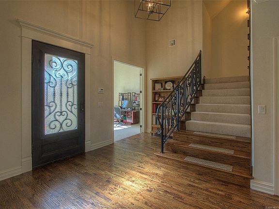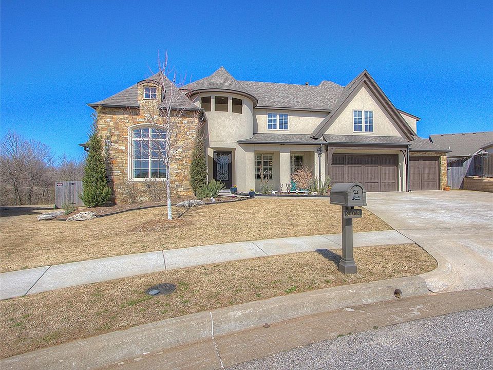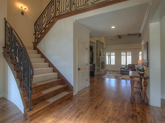 Beautiful home in The Legends with Greenbelt view and oversized lot. "Like New" construction with master and separate guest suite downstairs. Detailed finishes and fixtures, grand entrance and vaulted ceiling. Large game room upstairs with 3 beds and 2 full baths. Gorgeous master bath with oversized tub and shower. Bixby Schools!