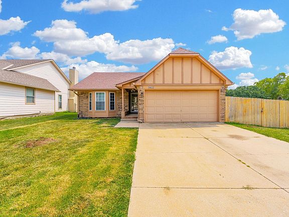 Located on a corner lot in southeast Wichita, this stunning home offers numerous newer upgrades, including an HVAC system and reverse osmosis water system (both 2023), plus a sump pump, water softener, deck, and privacy fence (all 2022). Head up the covered front porch and step inside to find an expansive living room under a soaring vaulted ceiling, featuring a cozy fireplace flanked by bright windows, providing the perfect backdrop for gatherings with family or friends. The spacious dining room offers access to the back deck through sliding glass doors, and the updated kitchen boasts stylish two-toned cabinets, tiled backsplash, ample counter and cabinet space, and included appliances, plus it’s open to the living room through a cutout wall. Both main floor bedrooms have vaulted ceilings and generous space, and there's a Jack and Jill style bathroom with separate vanity areas and a shared toilet and bath tub between them. The master features a huge walk-in closet, giving you plenty of room for storage. Head downstairs to discover even more living space with a large family room complete with a bar area, plus a third bedroom and a full bath, making this the perfect setup for a second master suite, mother-in-law quarters, or guest retreat. Out back, the enormous deck sets the scene for summer barbecues, all within the privacy of the fenced backyard. Located close to local schools, grocery stores, restaurants, and offering quick highway access via I-35 and Kellogg/Hwy 400/54, this home is in a super convenient location near everything you need. Schedule your private showing today and come see it before it's gone!