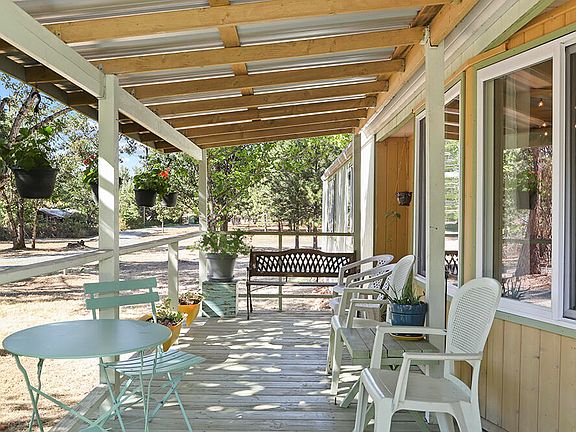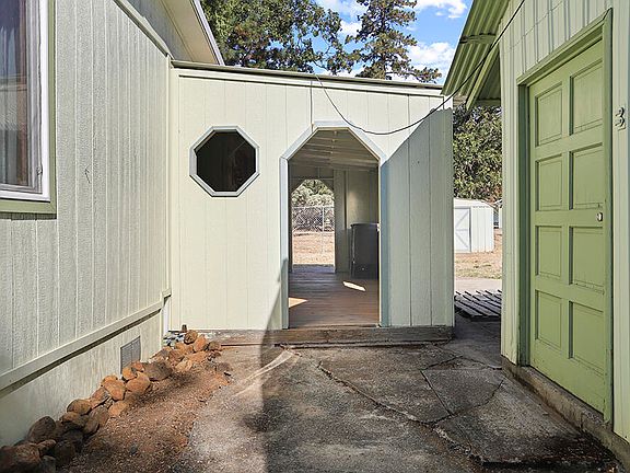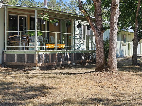 Perfect Country Property in the North Valley area & Only 13 mins from Grants Pass! This beautiful flat, treed parcel features a 3 bed/2 bath manufactured home, single detached garage w/workshop, 3 bay detached carport with power and 3 good sized additional storage sheds! The home sits away from the road and is ready for your ideas and creativity! Live in the current home or bring plans to build new! The master bedroom features a large bathroom, ready for remodel with a shower/tub combo, dual vanity, and Walk-in closet. Newer windows throughout and a pellet stove in the living room will keep you cozy during the winters. Behind the home has a fenced in area for your family pet to roam around freely, plus Newly graveled circle driveway is perfect for all your vehicles and RV parking. This lovely property has tons of space and is ready for your family!