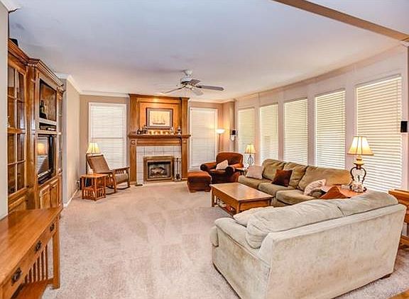 This gorgeous 2 story in the desirable Willow Brooke subdivision and reputable Staley High School district is loaded with space and features! Enjoy hosting in the over-sized kitchen or on the covered custom patio with slate floor and outdoor fireplace! The stunning staircase leads you to the bedroom level with newly updated master suite and custom hallway built ins! Fresh exterior paint, newer roof, new tile and sink in stunning master bath! This former model is sure to impress and won't last long!