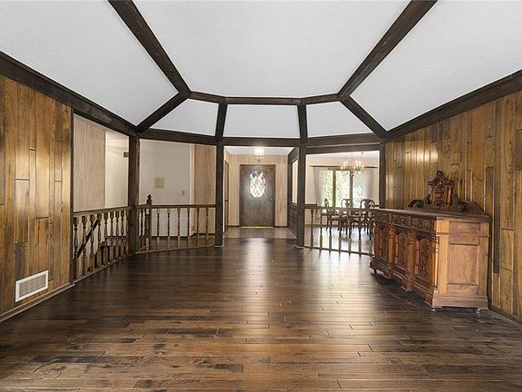 Beautiful ranch home on a heavily treed lot in the desirable community of Weatherby Lake in esteemed Sea Point Cove! Very well maintained home w 2 beds on the main and 2 beds below in the walk lower level. Charming greatroom w new hickory hardwoods thru out and cozy gas burning fireplace. Eat in kitchen and formal dining room. Extra large 2 car garage plus bonus 3rd bay below. Recent updates include high end hickory hardwood flooring, newer dishwasher, newer furnace and hot water tank and Anderson replacement windows plus well constructed all redone deck! This home offers generous room sizes and great bones. Bring your design ideas and build sweat equity! The huge finished walkout lower level is perfect entertaining and offers a large rec room with fireplace and handsome bar plus 2 additional bedrooms & bath and enormous storage space plus extra garage to house your recreation toys, tools or could be a workshop. Outside you'll find a well-landscaped yard, mature trees and lovely newly updated deck to relax on. WB Lake is a close community with so many activates to take advantage of : club, fishing club, yacht club, garden club, book clubs, 4th of July celebration & fireworks, concerts in the parks, bands on the water, a triathlon, and more. This is the perfect place to enjoy and entertain in the Spring, Summer and Fall! Award winning Park Hills Schools and just 15 minutes to KCI Airport, 20 Minutes to downtown Kansas City! Come and view this home today!
