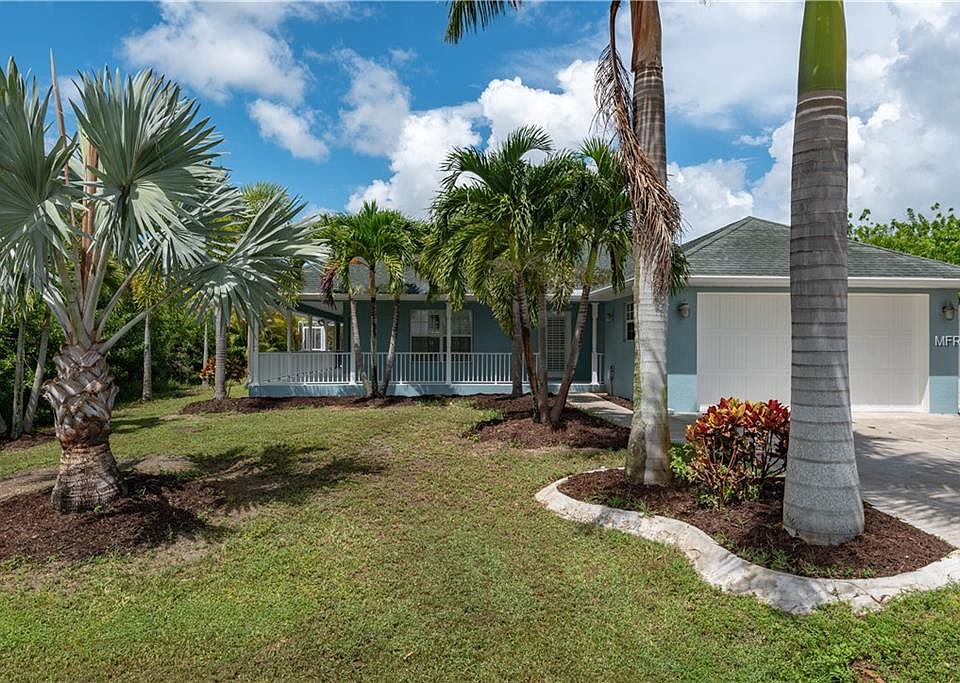 New Price adjustment! Come check out your new Key West style home today! Located in the sought after waterfront boating community of South Gulf Cove. This spacious open floor plan offers abundant light with beautiful hurricane resistant French doors and windows all around. Entertain guests for years to come with the wrap-around porch leading to the pool and large lanai. Even the master bedroom has French doors to the pool, as well as, walk-in closets, dual vanities and sinks, a soaking tub and a separate shower. You will fall in love with the beautiful plantation shutters throughout that make this home extremely energy efficient! This very private and serene setting is lush with tropical landscaping and has a very low maintenance yard. Visit this one today to experience the Florida lifestyle at its BEST!