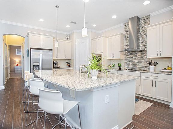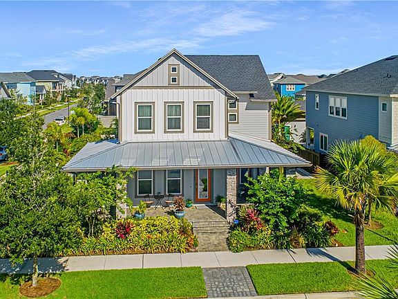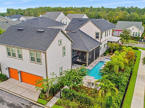 3D virtual tour here - bit.ly/9403ReymontStVirtualTour. Be prepared to be amazed. This home has wow factors everywhere, inside and out. Oversized corner lot located on a quiet street in Laureate Park in Lake Nona. Stunning David Weekley REEF model, this home has amazing upgrades and more. This incredible home boasts five bedrooms, four and one-half bathrooms, including a three-car detached garage with an upgraded epoxy floor and hanging storage galore. The garage apartment has its own separate entrance that provides additional income. Amazing curb appeal with meticulously maintained butterfly and hummingbird gardens and lush vegetation surround the home. You will feel like you're on vacation with a resort feel. An expansive wraparound front porch is the perfect setting to relax and unwind or start your morning off with a cup of coffee and watch the sunrise. Step through the front door into an open and bright interior with countless upgrades. Crown molding, whole-house sound system, Nest thermostats, upgraded lighting and thermal windows, oak staircase with wrought iron spindles and three sets of French doors. This home flows perfectly and is a designer's dream with Porcelain wood-look tiled flooring through the main living space. The home office greets you with an open-columned doorway and the Chef's kitchen that is light and bright opening to the family and dining area. The kitchen has an expansive center island with breakfast seating, built-in stone sink and dishwasher, granite countertops and glass tiled backsplash, upgraded 42-inch cool color tone cabinets and a walk-in pantry. Stainless steel appliances with extended stove hood. The family room accesses the extended screened-in lanai via double French doors, and the dining area accesses the side porch. The owner's suite is a private haven that boasts a spa bathroom with dual sinks and a custom walk-in closet with built-ins. The custom laundry connects from the bath and hallway providing ease of use. Upstairs you find a huge loft, three generous sized bedrooms with all of their own custom closets, and two full bathrooms with glassed-in European-style baths. Just as amazing as the inside, the outside keeps the wow factor going. The impressive screened lanai overlooks the fenced yard with amazing mature landscaping. The paver walkways and a sparkling heated saltwater pool with electrifying lighting in and around the pool offer nonstop family fun. Last but not least is a detached 3-car rear loading garage with a fully furnished apartment with full kitchen and laundry. Built with many energy and design features, this home has missed nothing. Laureate Park is perfectly located for easy access to anywhere in the Orlando area. Amenities include pools, a fitness center, trails, dog parks, greens for community events, gardens, parks and A-rated schools. One-year home warranty provided. This is a must-see home - make your appointment today.