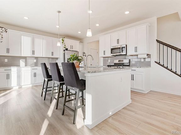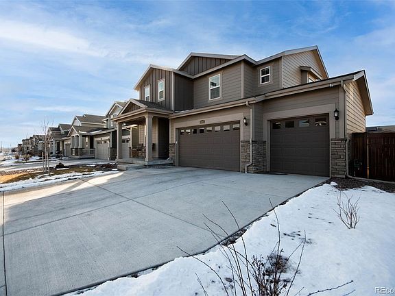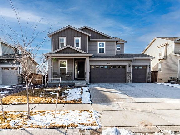 Welcome to 9403 Sedalia St, a like new home in Buffalo Highlands with mountain views! Step through the front door and you are greeted by an open floor plan flooded with natural light from the numerous windows, high ceilings and bright neutral paint. Luxury vinyl plank flooring flows through the main level along with recessed lighting. On the main level there is a home office, powder bathroom, large living and dining area, and beautiful modern kitchen. Stainless appliances, plentiful counter space, granite countertops, pendant lights, subway backsplash, a gas range, pantry, bar top seating, coffee bar and exceptional storage grace the kitchen. Upstairs you will find 4 bedrooms, a convenient laundry room, and full bathroom. The owner suite is oversized with a walk-in closet and its own attached bathroom with a shower and double vanity. The fully fenced back yard boasts its own trex deck and lots of space to make your own. The walk out basement also has tall ceilings, is insulated and lighted with plentiful natural light, and is a blank canvas ready for your creative design and finishing. There is a 3 car attached garage and solar panels leased at $40/mo. This Lennar home is conveniently located near trails, parks, shops and Mile High Flea Market; with easy access to Downtown Denver, Coors Field, E-470, I-76 and Denver International Airport. Schedule your showing to make this your next "home"!