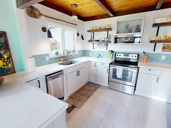 This 3 bedroom, 2 bath updated home with a mid-century feel is sure to catch your eye. With Hardie Board siding, dual vinyl windows and Luxury Vinyl Plank flooring in the main living space, this home adds both chic style and practicality. A well-appointed kitchen provides functionality with Corian countertops, tile floor and an eat at island. The expansive yard offers two patio areas perfect for outdoor entertaining or peaceful relaxation. Plus the owners suite has its own sliding glass door to the backyard so you can enjoy those fabulous views right from your bed! What separates this unique property from any other? Not only does it have all of these amazing features but also includes extras like a fireplace, tongue-groove ceiling and 4 skylights plus office/closet spaces to make use of every inch inside as well as out. You won't find another house like this one!