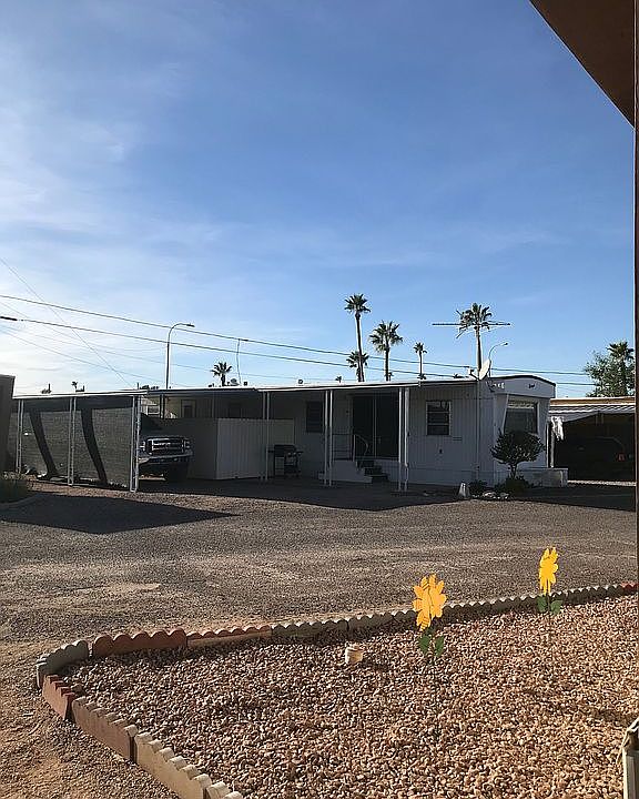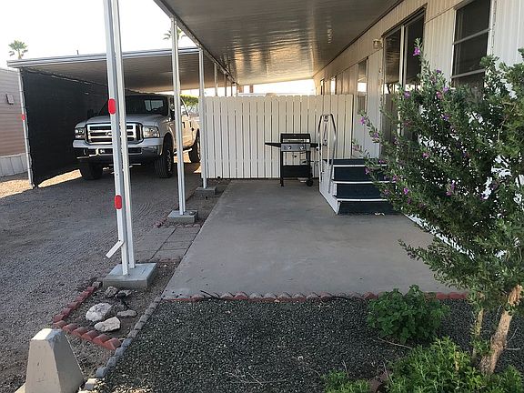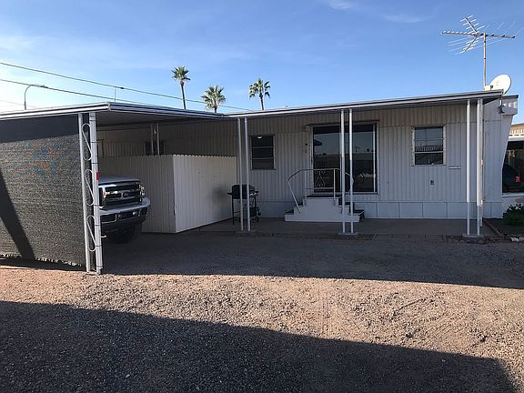 All Age Park with Low Space Rent Zillow has Taxes incorrect. My taxes are less than $75 a year! 2 bedroom 1 bath mobile 12x56. Has Central Air and Heat Pump with Evaporative Cooler. RO water system and Personal Laundry facility. Private 6 person Hot Tub with Vinyl Fence for privacy. 10x14 shop and covered backyard for plenty of storage out of the weather. 12x30 carport and fully covered patio. Fresh roof coating. Low lot space rent of $350, which will be hard to match. Available for immediate occupancy with approval from office. Also listed taxes are incorrect. This is home on space 25. Clean clear notarized title in hand. Can move in as soon as office approves you. Off the 202 near Ellsworth and Apache Trail. No financing offered by seller, buyer will have to have cash or seek private financing.