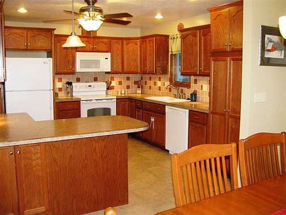 Custom kitchen with tiled backsplash & flooring, pantry, & many unique & wonderful cabinetry features.2 bathrooms have been updated w/ tiled showers; Master bath has heated floor! So many storage places & cedar closets. Plus, all new within the last 6 years, windows- including 3 panel bay window in the living room, gutters, exterior paint, furnace, heat pump, carpets, pergo flooring in 3rd bedroom. For the handyman, there is a fantastic workshop inside the garage. This truly is a must see