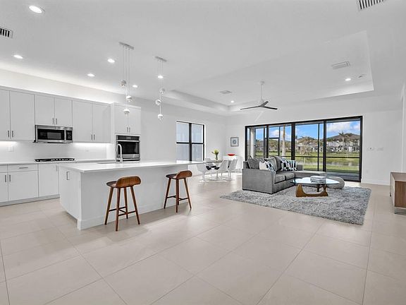 LOWEST PRICED LAKEFRONT HOUSE AVAILABLE IN VALENCIA GRAND GL HOMES NEWEST 55+ COMMUNITY. 2 BEDROOMS PLUS DEN WITH 2.5 BATHROOMS. CONTEMPORARY VIENNA MODEL WITH BEAUTIFUL STONE FRONT, BIG GLASS WINDOWS, GLASS FRONT DOOR & UPGRADED GARAGE DOOR. WIDE OPEN GREAT ROOM FLOOR PLAN WHICH IS FABULOUS FOR ENTERTAINING. PORCELAIN TILE THROUGHOUT MAIN LIVING AREAS AND CARPET IN THE BEDROOMS. UPGRADED WHITE SHINY KITCHEN CABINETS WITH WHITE QUARTZ COUNTERTOPS. LARGE PRIMARY BEDROOM WITH TWO CUSTOM WALK-IN CLOSETS. PRIMARY BATHROOM HAS DUAL SINKS, SHOWER & MAKEUP VANITY. SEPARATE LAUNDRY ROOM. OVERSIZED SCREENED PATIO WITH ENDLESS LAKE VIEWS. TWO CAR GARAGE. COMMUNITY HAS INDOOR/OUTDOOR PICKLEBALL COURTS, TENNIS, RESTAURANT, SPA, GYM, POOLS, OUTDOOR BAR, CARD ROOMS & MORE. BLINK AND IT WILL BE GONE. LOWEST PRICED LAKEFRONT HOUSE AVAILABLE IN VALENCIA GRAND GL HOMES NEWEST 55+ COMMUNITY. 2 BEDROOMS PLUS DEN WITH 2.5 BATHROOMS.