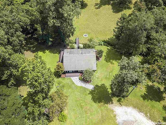 Tucked behind the trees this fully renovated 3/2 on just over 5 peaceful acres is a modern oasis! Kick back and relax on the front porch or take the vast wrap around deck to your own creek! Through the front door a cozy living room with vaulted ceilings and cedar lined wall awaits. An updated kitchen featuring corian counters, all wood cabinets and stainless steel appliances provides ample space and storage. An expansive family room lined with windows allows tons of natural light into the home and offers gracious views of the property. The master suite has an updated bath with tiled walk-in shower, double closets and newer carpeting. Towards the front of the property an 850 sqft workshop/garage with concrete floors, two rolls up doors and electricity allow for all your weekend project and storage needs. A 10x12 storage shed is also on the property. The roof was replaced in 2012, newer Pella vinyl windows and newer HVAC. Lower utility bill with Duke. Hidden away but only 15 minutes to Gainesville. You have to see this property!