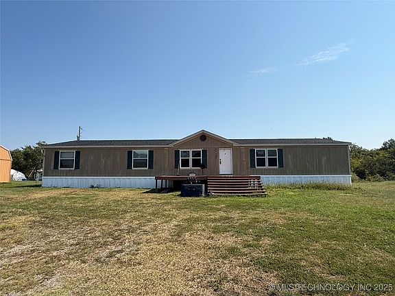 Check out this spacious 2010-built mobile home with 4 bedrooms, 2 bathrooms, 2 living rooms, a fireplace, and sitting on 20 +/- acres. The master bedroom is huge with a huge office. This property features a brand new roof as of 8/27/25, mature trees, some pastures, some wooded, a weather creek, and an abundance of wildlife (deer, turkey, wild hog). The property has a 2022-built 30x60 shop with sprayed foam, a 10x16 shed for storage, two other miscellaneous. storage buildings, and 2 - 30x100 greenhouses. Easy access to Hwy 69, located just south of Muskogee. Selling AS-IS. See this property and make it yours today! It won't last long! Seller is in process of removing items from house, sheds, and shop.