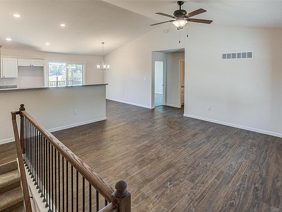 This charming lake house, a second-tier location with a stunning 1st tier view. Features three bedrooms, two full bathrooms, plus a rough-in for an additional bathroom in the basement. The kitchen and living room are enhanced by vaulted ceilings, contributing to the spacious ambiance of the home. The rear of the house boasts a sizeable 12 x 12 covered deck, perfect for serene evening relaxation. Residents of the community enjoy access to 12 unique lakes. A short 5-minute drive connects you to shopping and dining options. Community amenities include public beaches, The Paddle Club, a playground, ATV trails, and a GATED ENTRANCE MUST HAVE AN APPOINTMENT TO SEE PROPERTY- YOU CANNOT GET IN THE COMMUNITY. Yard will be seeded with straw prior to closing. Bathroom mirrors will be installed prior to closing. Schedule your viewing appointment today!