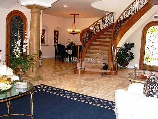 Remarkable custom home that overlooks the sweeping 6th fairway of TPC Golf Course. Lush landscaping and a courtyard entry lead you to a stunning grand foyer. Custom forged wrought iron sets the tone for the beautiful finishes displayed throughout including crown molding, imported Italian Marble flooring, Crestron recessed lighting, warm wood accents and soaring two-story ceilings. The home also features 6 bedrooms suites, a library/cigar room with fireplace and exhaust, an upgraded kitchen and large family room with a full wet-bar. The master suite is a retreat of its own boasting a large sitting area, cozy fireplace, private balcony and fantastic master bath. The serene outdoor space is fabulous for entertaining, from the expansive covered patio and outdoor kitchen to the putting green, soothing water fountain and sparkling pool, this home is sure to please. Call Shapiro & Sher Group for an exclusive viewing at 702-315-0223.