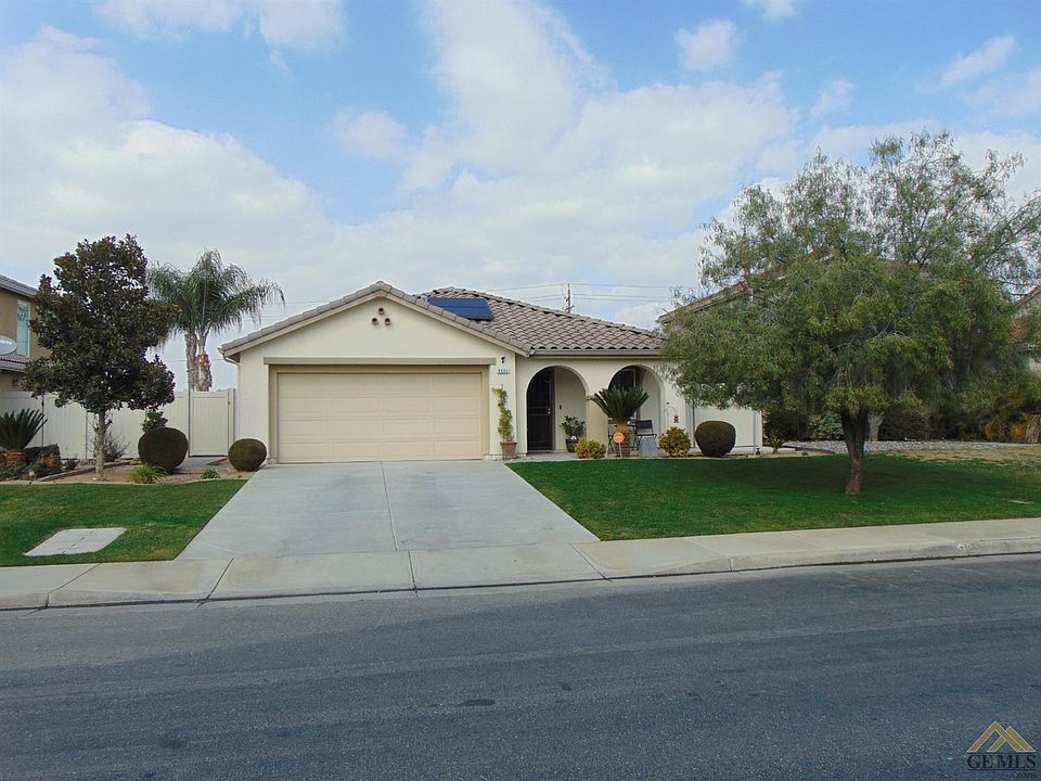 Lovely home with SO many updates being sold by original owner who has spent $35,000+ making it optimal! Cute front covered, plus impressive 20 ft flag pole to show your Patriotism. Single story with separate living spaces and so much efficient storage. Updates include: SOLAR, wood plank ceramic floors w/5 base boards (in common areas), Remodeled guest bath with beautiful walk-in shower, granite in kitchen & both baths plus tile floors. Rear block wall (tall) and brand new side vinyl fencing/vinyl covered patio with stamped concrete plus extra concrete on both sides. Low maintenance backyard with a lovely retained planter with well groomed shrubs. Great man cave with custom shelves and work bench in garage plus overhead storage. Guest bedroom has new carpet and custom closet for optimal storage. Potential for small RV storage on East side. Easy access to Bike path.