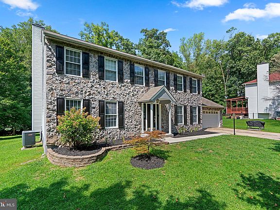 Welcome to this beautifully maintained 5-bedroom home, where comfort and elegance meet. The main level features gleaming hardwood floors that flow throughout, adding warmth and character to every room. The eat-in kitchen is both stylish and functional, with a peninsula and beautiful quartz countertops that make meal prep a pleasure. Adjacent to the kitchen is a cozy family room with a fireplace, perfect for gatherings, and sliding doors that open to a potential future deck of your dreams. The formal living and dining rooms offer flexibility and privacy, with the living room featuring beautiful frosted glass door entryways and the dining room having sliding barn doors at both entrances. Both spaces can easily be used as home offices. The main level also includes a convenient laundry area and a half bath. Upstairs, you'll find a full bath in the hallway with a double sink vanity and five generously sized bedrooms, including a spacious owner's suite. The owner's suite is a true retreat, boasting an ensuite bath with a double sink vanity, a separate shower, and a large soaking tub. The finished lower level provides even more living space with multiple rooms and a full bathroom, along with an unfinished area perfect for storage. The backyard is a private oasis, backing to woods, offering peace and tranquility. Additional features include a 2-car garage and the opportunity to create your dream outdoor space with the future deck. This home is a rare find with its well-maintained condition, versatile spaces, and serene setting—ready for you to make it your own!