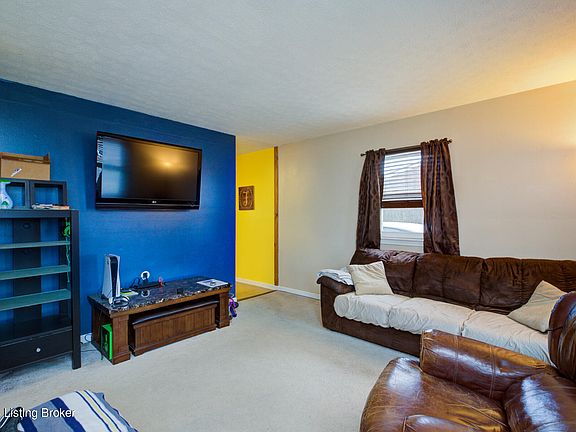 property features an open living space between kitchen and back den, spacious bedrooms, and
