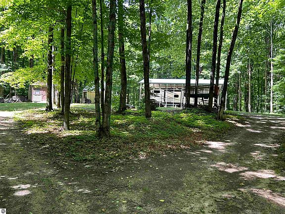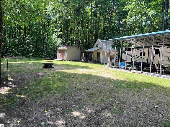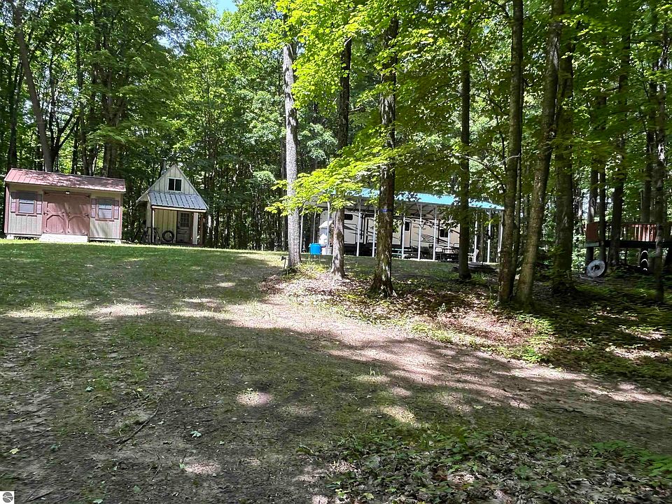 Beautiful 2.5 acre wooded lot near everything Northern Lower Michigan has to offer, inland lakes, snowmobile trails, ski resorts, etc. Included in this sale is an immaculate 2018 32 ft Mesa Ridge Bunkhouse RV travel trailer (rated for winter). Also included is a 10' x 16' rustic cabin, a 12' x 16' garden shed, and a 24' x 40' RV port with wooden decking.