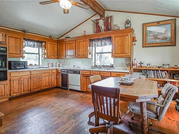 Charming Southwest design on Rt 66 between Arcadia Lake and Pops. Rustic country style 2 story home with a beautiful view from the upstairs master bedroom balcony. Western type front porch runs the entire length of the house. This property offers so much in it's location and setting. Perfect for a home based business with 220' of frontage on Rt 66. Several outbuildings including a 30 x 50 workshop that could be a welder or auto mechanic's dream with lots of outlets, 220 outlet, 1/4" Steel workbench, tons of storage cabinets, counter space, and an enclosed room for office or lounge. Also a 22 x 36 three bay carport/shed for truck parking or could be modified into a row of stalls for horses. Shed has a 22 x 11 enclosed room (potential mancave) at the south end. Front pastures have pipe fencing and two run-in sheds for livestock. Front of property has city water and could be zoned F5 commercial (restaurant, office building, vet clinic, landscaping business, etc). House needs updating.