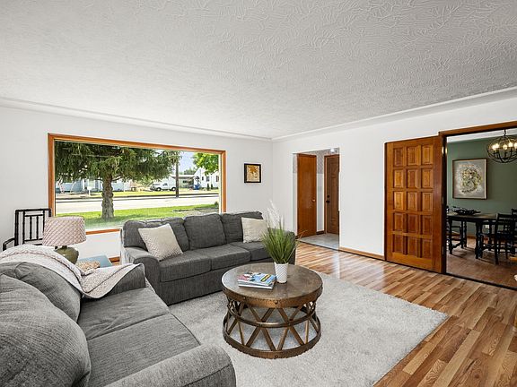 Welcome to this charming 4-bedroom, 3-bathroom brick rancher that seamlessly blends classic appeal with modern updates. The home boasts updated flooring throughout, offering both comfort and style. Unique features include two hot water tanks, a spacious 1200-square-foot shop, and a huge patio for entertaining guests. Outside, enjoy the fruits of your own private fruit bearing trees and a plumbed garden (cherries, pears, peaches, apples, blackberries, raspberries) Inside, choose between two cozy living rooms, each with its own fireplace for added warmth. Multiple vehicle parking with the 2 car garage additional shop in back with 2 garage doors. Brick home stays comfortable with gas furnace. Property is Mix Use Commercial/Residential on nearly half an acre. Double laundry rooms. Great for multi-generational households. Kitchenette in basement just needs a fridge and stove to be considered a kitchen.