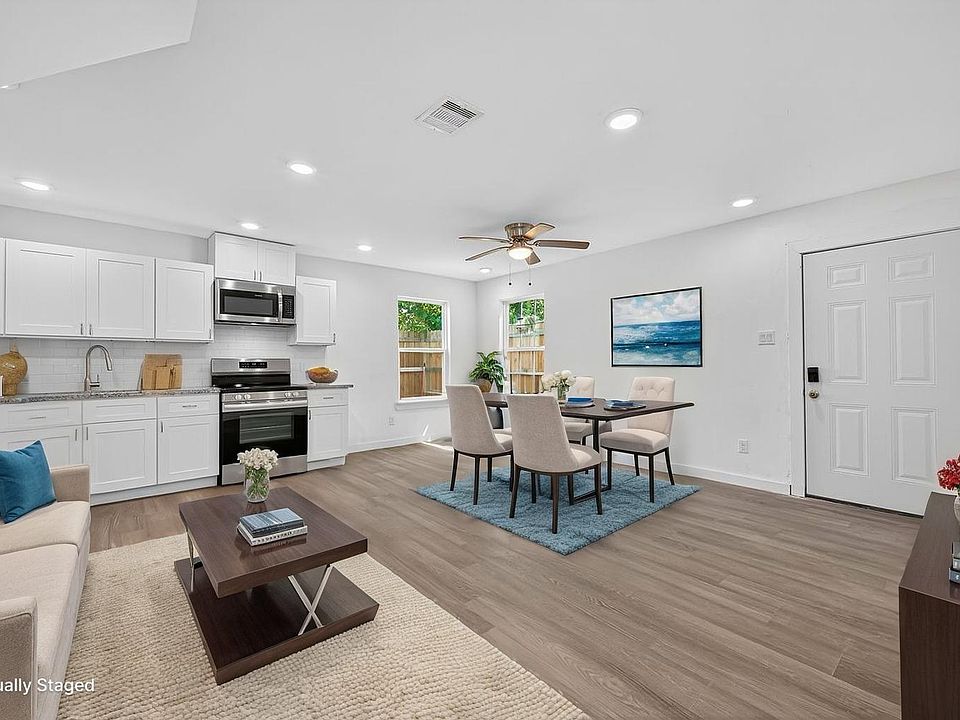 This building was recently built and has tons of natural light! ALL APPLIANCES INCLUDED and NO CARPET! Unit A is rented and Unit B is listed for lease. Plenty of driveway parking and a private and secured entrance leads to an open floorplan with family room and kitchen! Family room has recessed lighting and a ceiling fan which & effortlessly into the kitchen. The kitchen has granite counters, bright white cabinets and refrigerator included! The laundry room is located on the first floor along with a spacious bedroom. The spacious and private primary bedroom is on the second floor w/lots of windows & a ceiling fan. HUGE walk in closet and bathroom with granite counters. The third bedroom is located on the second floor with easy access to the extra bathroom. Schedule your tour today before this low investment property is gone!
