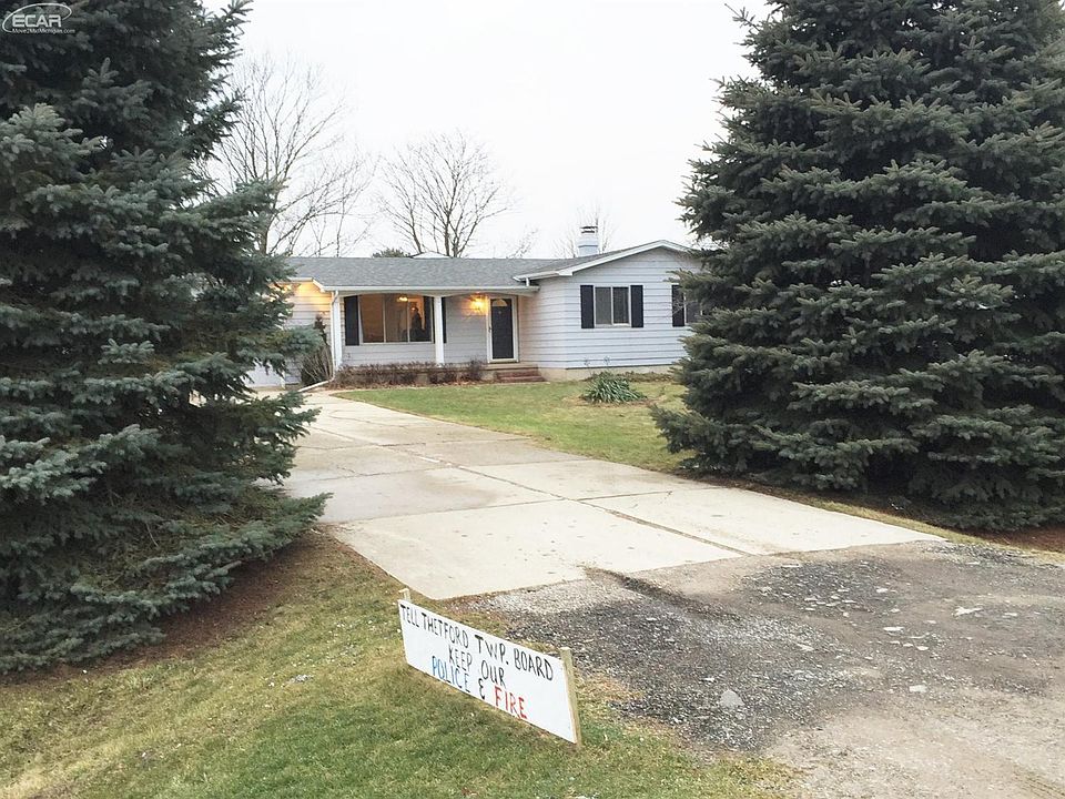 Spacious home in popular rural area of Thetford township. Freshly painted in today's neutral colors! Hardwood floors through out. Bright updated kitchen opens into a large dining room graced by a beautiful warm fireplace. New bathroom completed only weeks ago. Half bath off of master. Basement was finished recently and gives you a second floor of finished space. Includes family room and workroom or office. Large 1/2 ac lot is surrounded by fence and allows plenty of room to run. Hidden from the road by large pines, this haven is easy to get into, with the sellers building in some of your closing costs. Roof redone apx 4 years ago. FHA or Rural Development buyers will be delighted with how clean this home is. Easy to show, and easy to sell